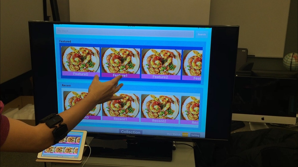 We developed an iPad app for this project. The iPad app is a recipe app which could display recipes that could help user to cook. The main feature for the iPad app is that the app could be controlled by the Myo Armband. Using the Myo Armband, user could control the recipe app without even touching the iPad.